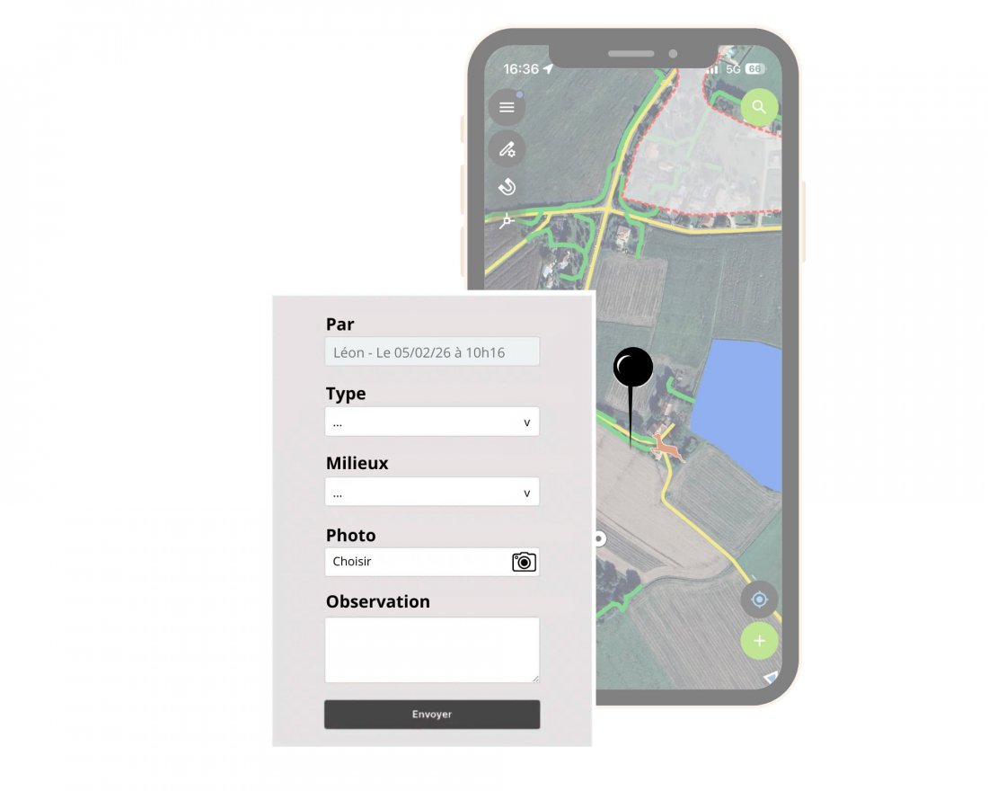 Toutes les informations sont géolocalisées et visualisables sur une carte, pour un suivi clair et partagé. |