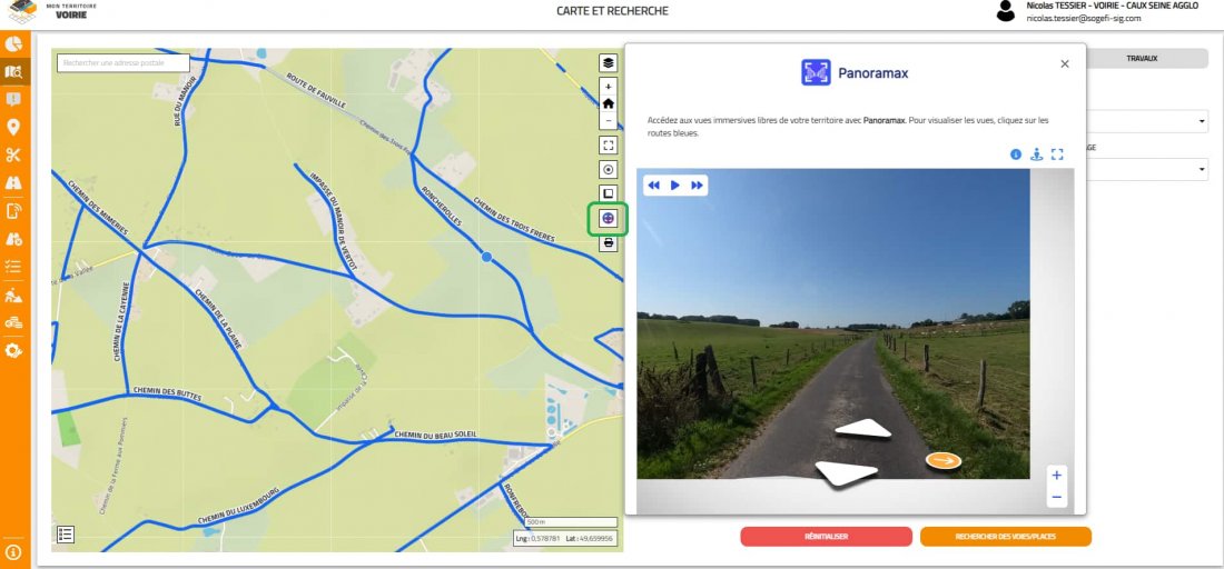 Désormais, Panoramax est également disponible comme source d’images dans Mon Territoire Voirie.